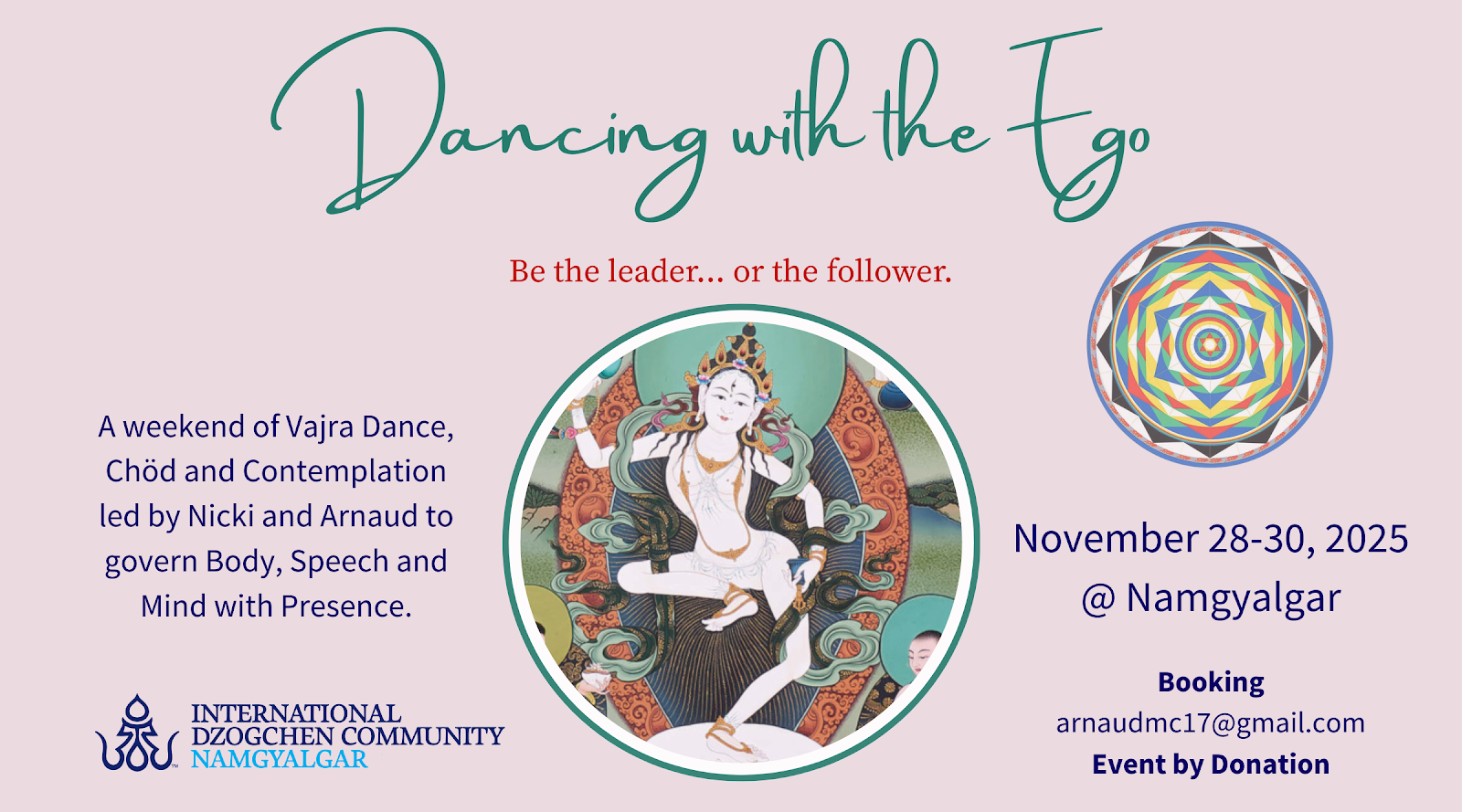Courses & Events COURSES & EVENTS Namkhai Yeshi Dzogchen Teachings February 13th - 14th Info & Registration May 9-11, 2025 Info & Registration July 2-8, 2025 Info & Registration COURSES & EVENTS Namgyalgar Members Dzogchen Retreats - Australia + New Zealand More Info Register COURSES & EVENTS Open Courses for all Introduction to Dzogchen Teachings Read more Yantra Yoga and Respira Online Classes Read more Online Khaita Harmony in Space Read more Vajra Dance Course 2025 Read more